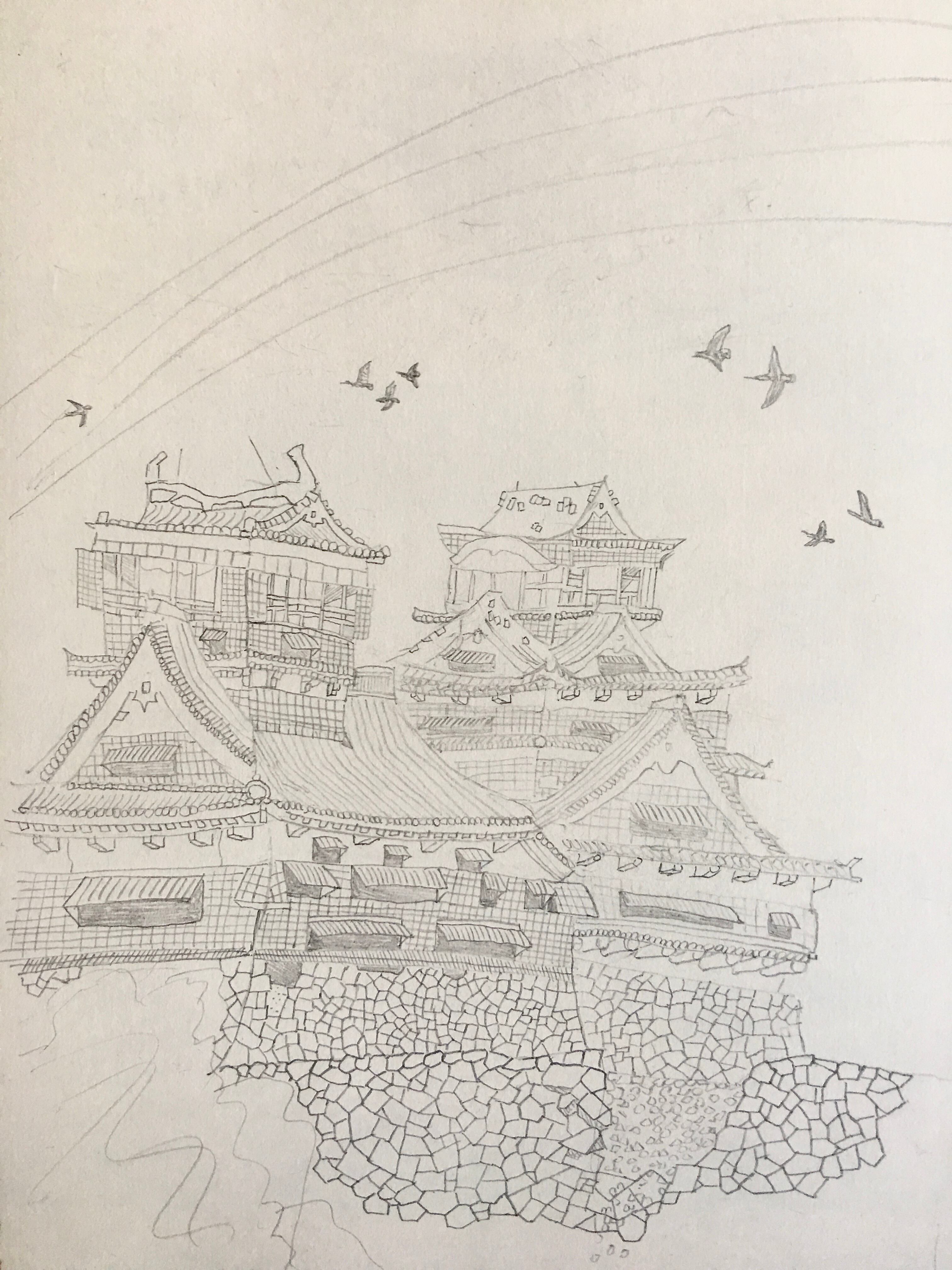 熊本城の絵を描くのはいつぶりだろう。小学生、中学生の頃の写生大会以来かな。いつも帰省するたびに勇気をくれる熊本城。故郷のシンボルを、希望の念を込めて描きました。(2017年お正月)
